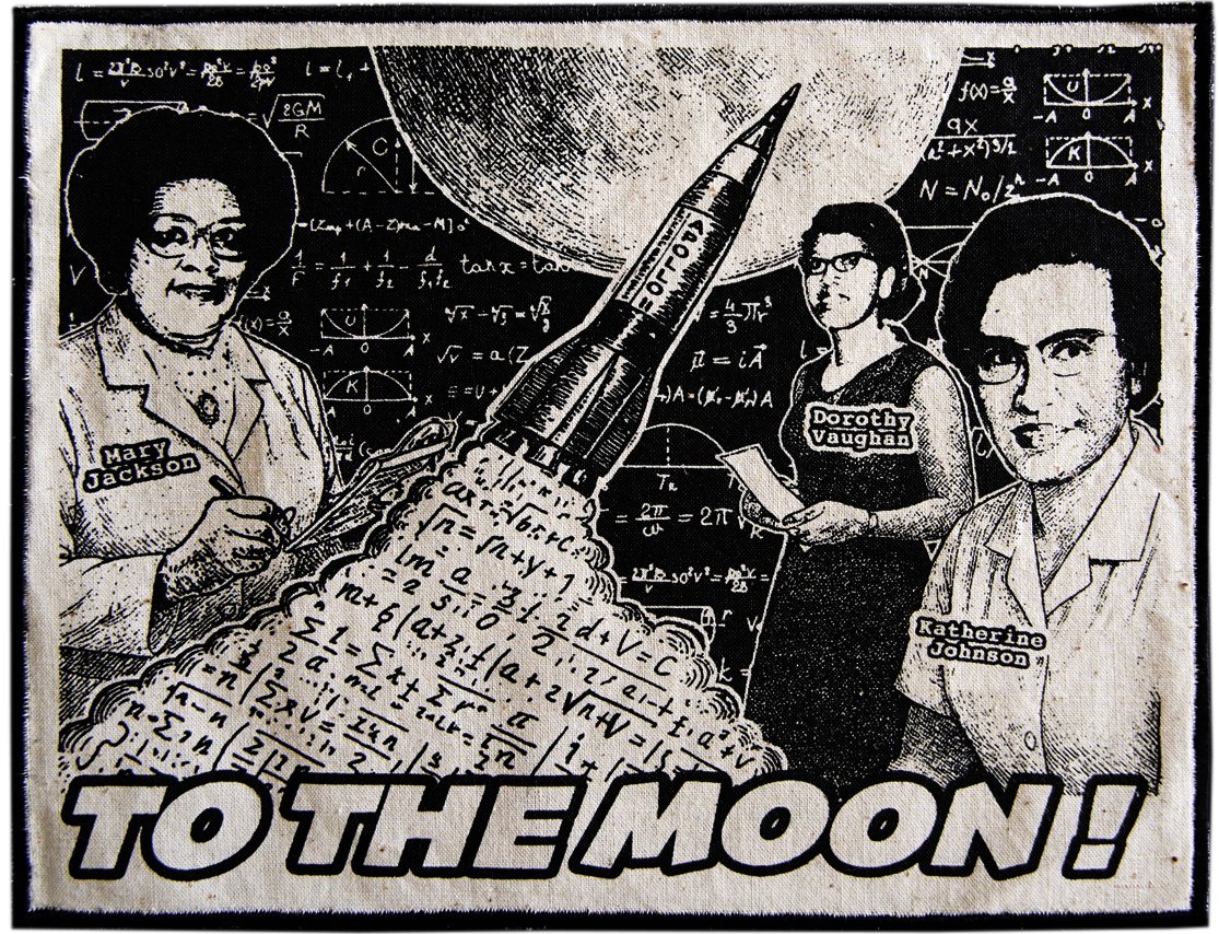 Ce patch unique, fabriqué à la main au Bénin, allie la richesse de la sérigraphie traditionnelle et la délicatesse de la broderie pour rendre hommage aux mathématiciennes, Katherine Johnson, Mary Jackson et Dorothy Vaughan qui, dans un Amérique asphyxiée par la ségrégation et le racisme ont réalisé les calculs nécéssaires pour envoyer Appollo 11 sur la lune! Imprimé sur du coton percale de haute qualité, il représente non seulement un symbole de résistance et de liberté, mais aussi un artisanat exceptionnel qui met en lumière le savoir-faire des artisans béninois.